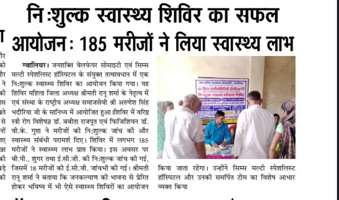 *निःशुल्क स्वास्थ्य शिविर का सफल आयोजन: 185 मरीजों ने लिया स्वास्थ्य लाभ*