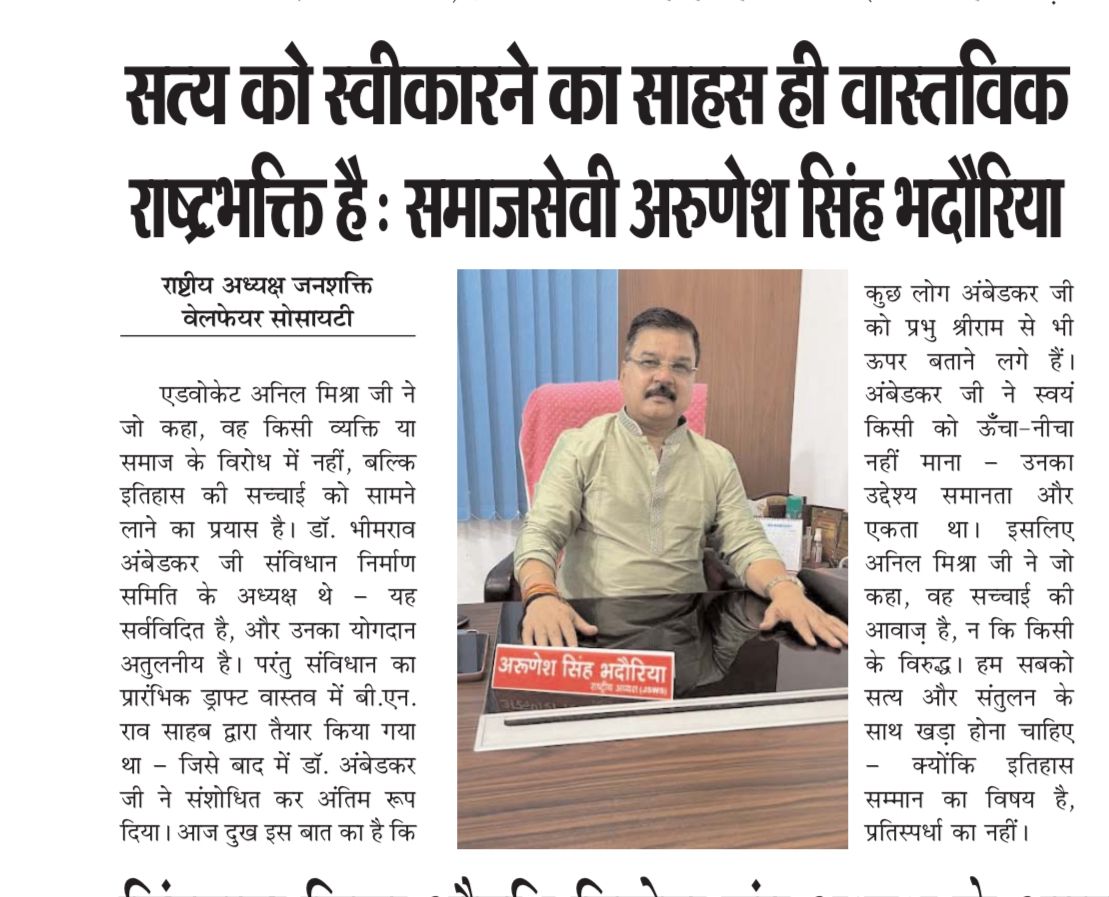 श्री अरुणेश सिंह भदौरिया जी (राष्ट्रीय अध्यक्ष, JSWS)