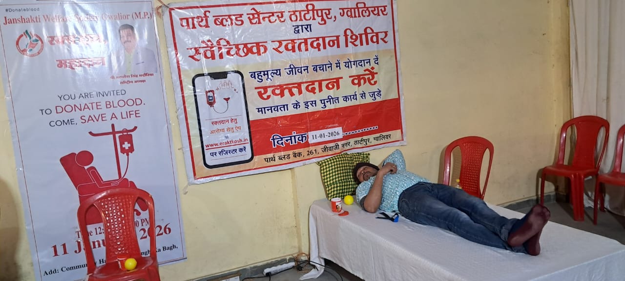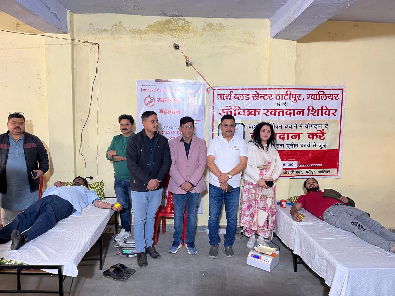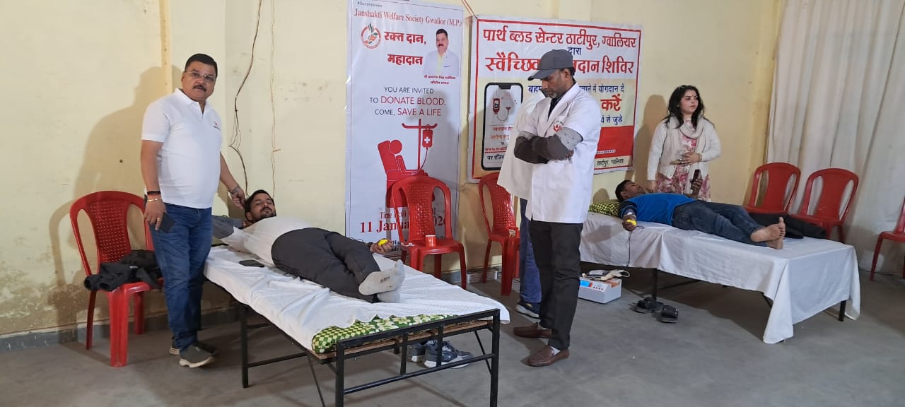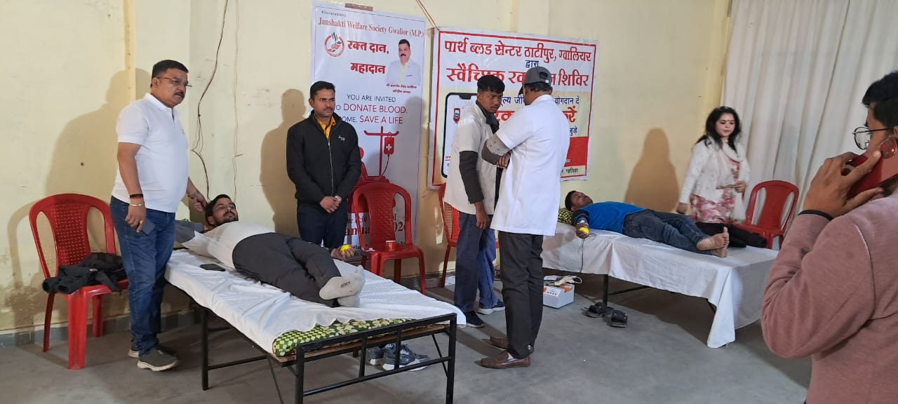 आज जनशक्ति वेल्फेयर सोसायटी द्वारा पार्थ ब्लड सेंटर के सहयोग से एक सफल रक्तदान शिविर का आयोजन किया गया।
